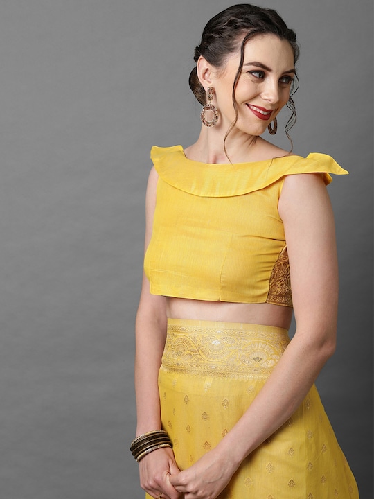 Motif Woven Design Yellow Silk Blend Ethnic Banarasi Saree
