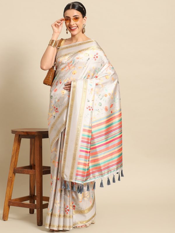 Floral Zari Grey Silk Banarasi Saree