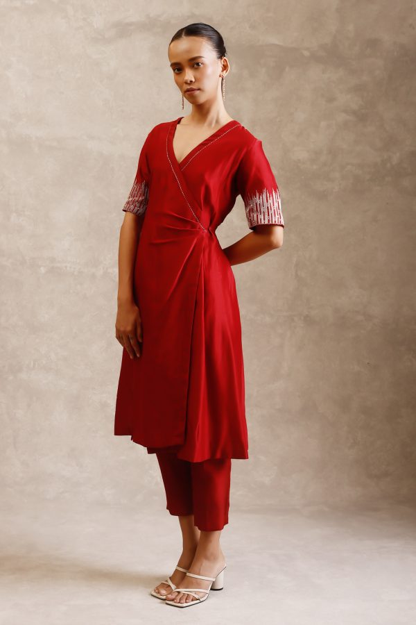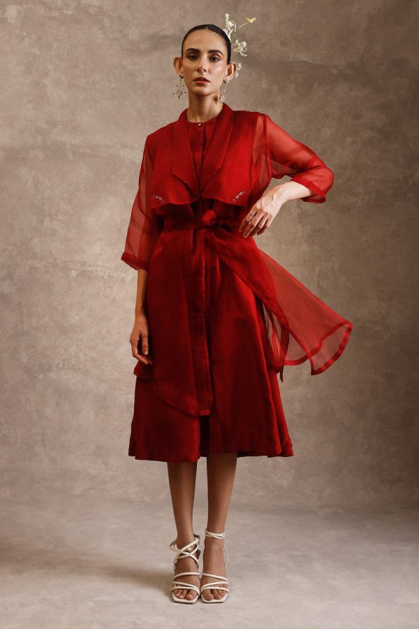 Maroon Dress Handwoven Silk Embroidered Thread Dress Kyesha A-Line Jacket Set