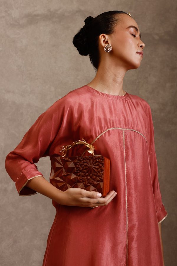 Brown Kurta Chanderi Silk Embroidered Traditional Round Indah With Pant
